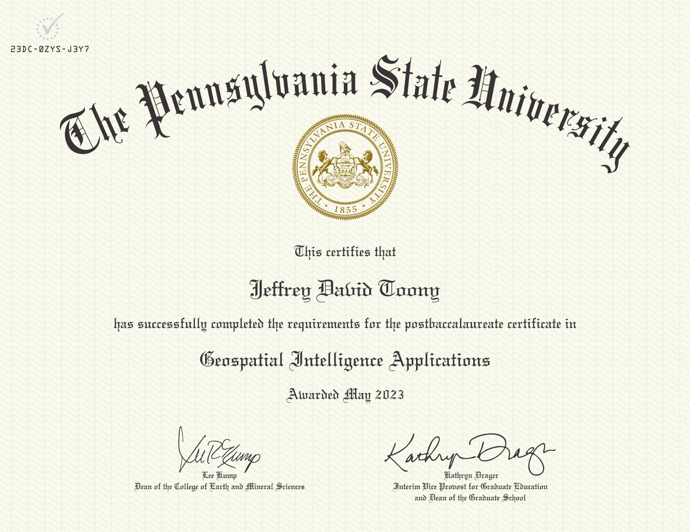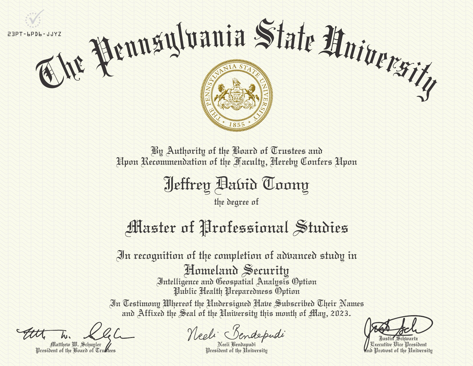 Master of Professional Studies Homeland Security: - Intelligence & Geospatial Analysis - Public Health Preparedness